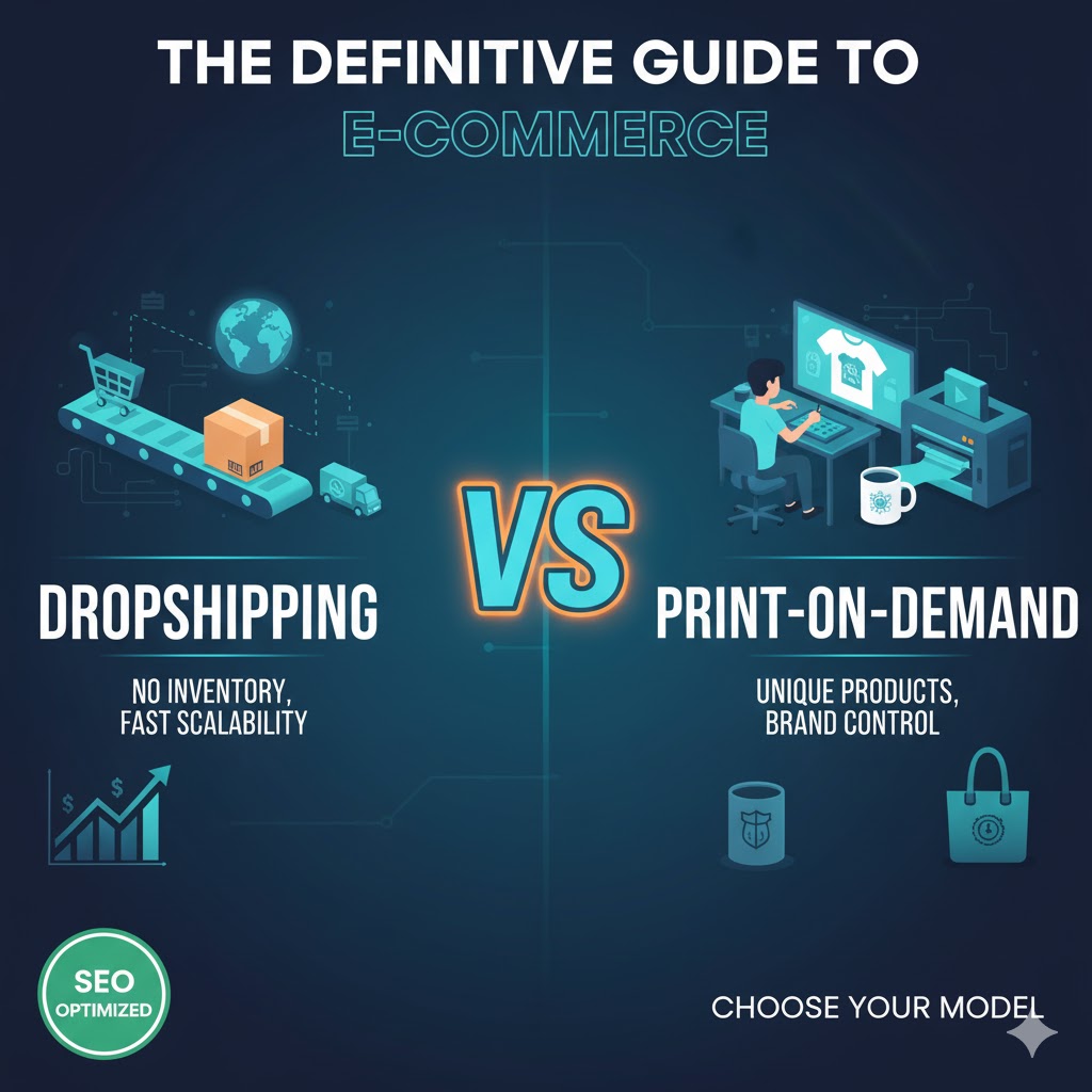 Discover the key differences between dropshipping and print-on-demand. Learn which e-commerce model suits your goals for profit, branding, and scalability.
